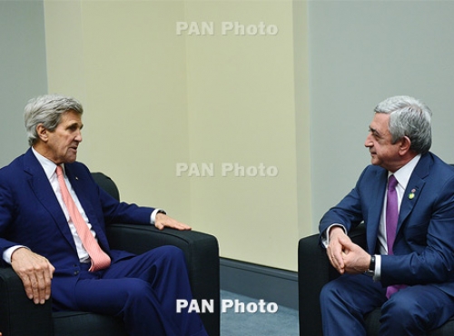 Ուելսում ՆԱՏՕ-ի գագաթնաժողովի շրջանակներում պետքարտուղար Ջոն Քերիի մասնակցությամբ 2014թ. սեպտեմբերին կայացած եռակողմ հանդիպումը, ըստ նախագահ Սարգսյանի, ԼՂ հիմնախնդրի խաղաղ կարգավորման հարցում ԱՄՆ շահագրգռվածության օրինակներից մեկն է: