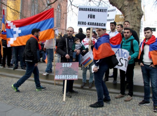 Գերմանիայի Արտաքին գործերի նախարարության դիմաց ապրիլի 8-ին տեղի է ունեցել բողոքի ցույց` ընդդեմ ղարաբաղա-ադրբեջանական զորքերի շփման գծում Ադրբեջանի խողմից զինադադարի խախտումների: