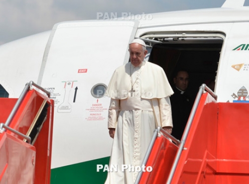 Հռոմի պապ Ֆրանցիսկոսի ինքնաթիռը տեղական ժամանակով 15:00-ին վայրէջք կատարեց Երևանի «Զվարթնոց» միջազգային օդանավակայանում: Անցկացվեց դիմավորման պաշտոնական արարողությունը՝ ՀՀ նախագահ Սերժ Սարգսյանի, Ամենայն հայոց կաթողիկոս Գարեգին երկրորդի մասնակցությամբ: