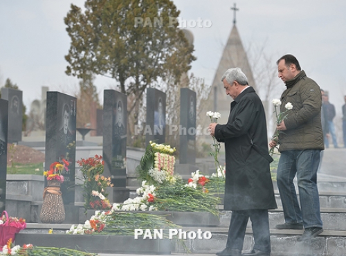 Հանրապետության նախագահ, Զինված ուժերի գերագույն գլխավոր հրամանատար Սերժ Սարգսյանը ՀՀ պաշտպանության նախարար Վիգեն Սարգսյանի և ԶՈւ բարձրաստիճան սպայակազմի ուղեկցությամբ այցելել է «Եռաբլուր» զինվորական պանթեոն: