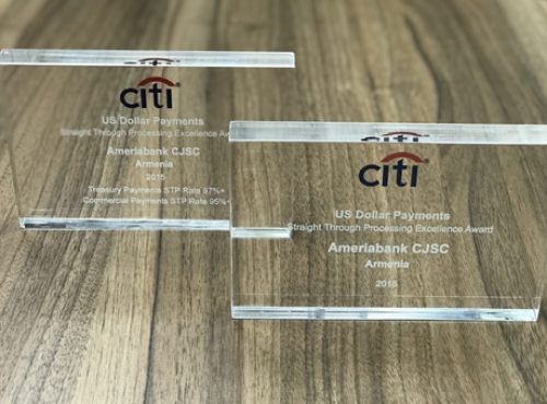 Սիթի բանկը միջազգային փոխանցումների իրականացման բարձր որակի համար Ամերիաբանկին շնորհել է միջազգային գործարքների իրականացման «Որակի գերազանցության» երկու մրցանակ` «STP Award 2015» և «STP Award 2016»: