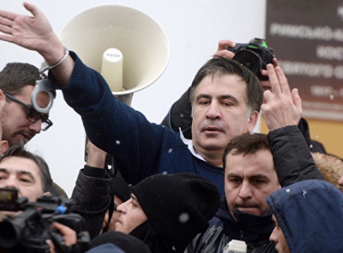 Ուկրաինական հատուկ նշանակության ուժերը հանել էին Սահակաշվիլիիին շենքի տանիքից, ուր նա բարձրացել էր՝ փախուստի դիմելով խուզարկության եկած իրավապահներից:Սահակաշվիլիին ձեռնաշղթաներով են դուրս բերել, նրա կողմնակիցները փորձել են խանգարել իրավապահներին: