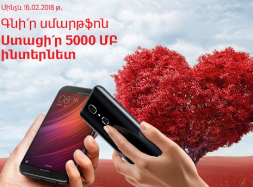 ՎիվաՍել-ՄՏՍ-ը տեղեկացնում է, որ Սբ. Սարգսի տոնի առթիվ, գնելով Samsung, Nokia, Motorola, Cubot, Alcatel, Huawei, Xiaomi կամ Blu սմարթֆոն ՎիվաՍել-ՄՏՍ-ի սպասարկման կենտրոններում, բաժանորդները կստանան 5000 ՄԲ ինտերնետ, որը կարող են օգտագործել 1 ամսվա ընթացքում: