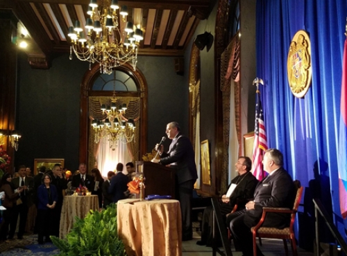 Չիկագոյի կենտրոնում գտնվող Հայաստանի նոր հյուպատոսական ներկայացուցչությունում տեղի ունեցած բացման ու պատվո հյուպատոս Օսկար Թաթոսյանի պաշտոնավարման մեկնարկի ազդարարման հանդիսավոր արարողությանը հաջորդել է դիվանագիտական ընդունելություն Չիկագոյի պատմական Union League Club-ում: