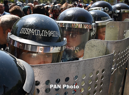 Ապրիլի 19-ի վաղ առավոտից ընդդիմության ներկայացուցիչները հավաքվել էին Հանրապետության հրապարակում՝ նպատակ ունենալով արգելափակել կառավարական շենքերի մուտքերը: Ոստիկանությունից PAN-ին հայտնել են, որ ժամը 10։00 դրությամբ բերման է ենթարկվել 20 մարդ՝ Կենտրոն, Էրեբունի և Արաբկիր բաժիններ։