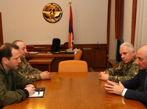 Հանդիպմանը քննարկվել են բանակաշինությանը և այդ ոլորտում հայկական երկու հանրապետությունների համագործակցությանը վերաբերող մի շարք հարցեր: