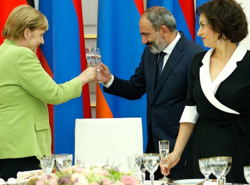Անգելա Մերկելը Նիկոլ Փաշինյանին Գերմանիա է հրավիրել և խոսել իր այցի արդյունքներից ու տպավորություններից։«Այսօր ես և իմ պատվիրակությունն այցելել ենք Ծիծեռնակաբերդի հուշահամալիր, որտեղ մեր մտածմունքներն ուղղված են եղել դեպի հայ ժողովրդի մեծ ցավը, որը նա կրել է 1915 թվականին: Ես առիթ ունեցա եղևնի տնկել ծառուղում և տպավորված ենք Ծիծեռնակաբերդ ունեցած մեր այցից: Հուսով եմ, որ Հայաստանը նայում է դեպի ապագա և դրա վառ ապացույցներից մեկն իմ՝ «Թումո» ստեղծարար տեխնոլոգիաների կենտրոն այցելությունն էր, որտեղ շփվեցի երեխաների հետ: Գարնան ամիսներին մենք ուշադրությամբ հետևում էինք Հայաստանում ծավալվող իրադարձություններին, հետևում էինք, թե ինչպես են Հայաստանի քաղաքացիները, հատկապես երիտասարդները վճռականորեն տրամադրված խաղաղ ցույցերի միջոցով իրականացնելու և արտահայտելու իրենց քաղաքական կամքը: Մենք՝ Գերմանիայի Դաշնային կառավարության ներկայացուցիչներս, պատգամավորները, պատվիրակության տնտեսական ոլորտի ներկայացուցիչները և առհասարակ գերմանական կողմը ցանկանում է ձեզ ուղեկից լինել այդ խիզախ փոփոխությունների ճանապարհին և ցանկանում է աջակից գործընկեր լինել հայաստանյան հետագա զարգացումների ուղղությամբ»,- ասել է Մերկելը։