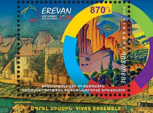 Ֆրանկոֆոնիայի 17-րդ գագաթնաժողովի շրջանակներում Երևանի Կարեն Դեմիրճյանի անվան մարզահամերգային համալիրում «Հայփոստ» ՓԲԸ-ի կողմից մարվել և շրջանառության մեջ է դրվել մեկ նամականիշով գեղաթերթիկ՝ նվիրված «Ֆրանկոֆոնիայի միջազգային կազմակերպության գագաթնաժողովը Երևանում» թեմային։