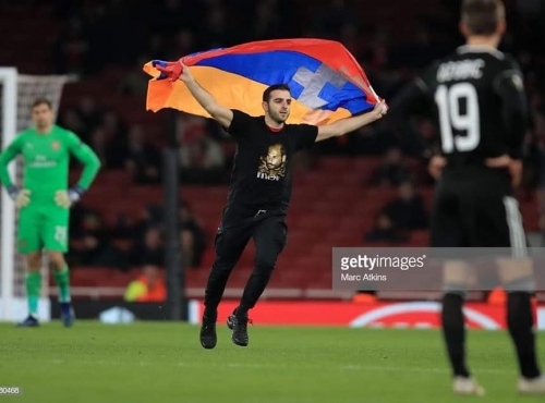Նա նաև կրել է ՀՀ ազգային հերոս Մոնթե Մելքոնյանի պատկերով շապիկ։ Խաղադաշտում Արցախի դրոշը ծածանելուց հետո, նրան հեռացրել են անվտանգության աշխատակիցները։