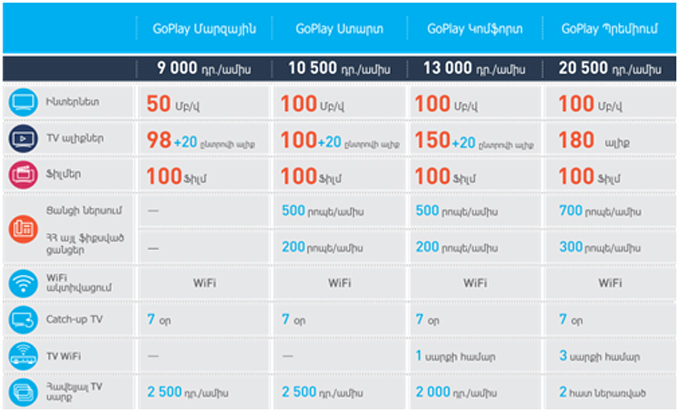 Բոլոր այն բաժանորդները, որոնք փետրվարի 26-ից կմիանան Տրիո GoPlay ծառայությունների փաթեթին մեկ տարով, կստանան հետևյալ առավելությունները.