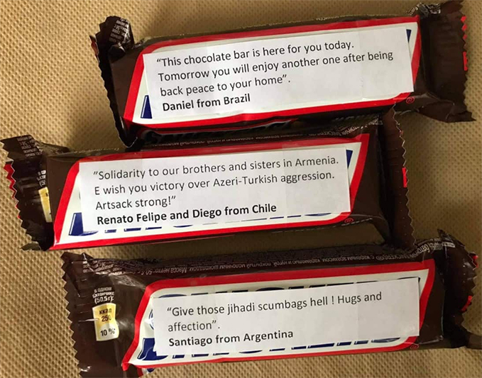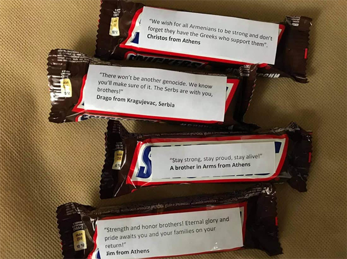 Հունական Greek City Times պարբերականն անդրադարձել է հայ զինվորների՝ Snikers-ի վրա «գրազ գալով» ադրբեջանական զինտեխնիկա խոցելու վերաբերյալ լուրերին և նշել, որ տեսնելով Հայաստանից Արցախում կռվող զինվորներին ուղարկվող Snikers-ները և դրանց կից երկտողերը, հույները, սերբերը, ռուսները, հարավամերիկացիները և այլ ազգերի ներկայացուցիչները հուզվել են և ցանկացել իրենց անունից էլ ուղարկել երկտողերով շոկոլադ։