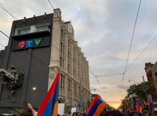 Կանադական Տորոնտոյում հայերը փակել են հիմնական լրատվամիջոցների՝ CTV-ի և CP24-ի գրասենյակներին հարող փողոցները։ Այդ մասին Twitter-ի իր միկրոբլոգում տեղեկացրել է տեղաբնակ օգտատերը։