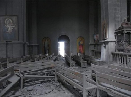 Հոկտեմբերի 8-ին ադրբեջանական կողմը 2 անգամ հարվածել է Սբ Ղազանչեցոց եկեղեցուն՝ ավերածություններ պատճառելով։ Երկրորդ հարվածի ժամանակ ներսում նաև ռուս լրագրողներ են եղել։ Նրանք վիրավորել են, որոնցից մեկը ծանր։