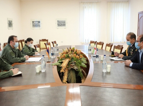 Պաշտպանության նախարարությունում Իրանի դեսպանության նորանշանակ ռազմական կցորդ Բահման Սադեղինիին ներկայացրել են Արցախի նկատմամբ Ադրբեջանի սանձազերծած ագրեսիայի հետևանքով ստեղծված իրավիճակը: