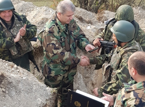 Արցախի ազգային անվտանգության ծառայության տնօրեն, գեներալ-լեյտենանտ Կամո Աղաջանյանն այցելել է մարտական դիրքեր և ԱԱԾ փոխտնօրեն Նորայր Միրզոյանին հանձնել գեներալ-մայորի ուսադիրներ։
