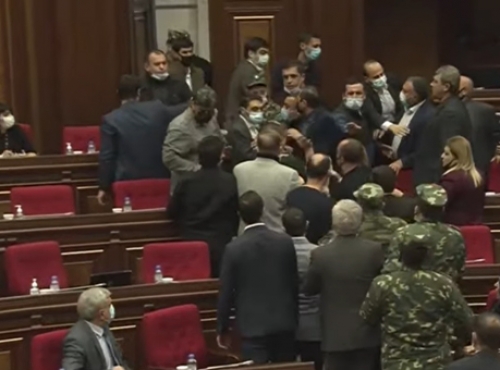 Դրանից հետո տեղից սկսել է խոսել ԲՀԿ-ից Նաիրա Զոհրաբյանը, մի քանի պատգամավոր ոտքի են կանգնել, լարված մթնոլորտը հանգստացնելու համար ԱԺ փոխխոսնակ Սիմոնյանը անվտանգության աշխատողներին է ներս հրավիրել։