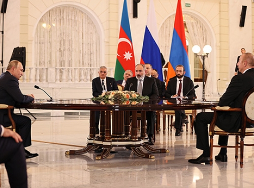 Սոչիում ՀՀ վարչապետ Նիկոլ Փաշինյանի, ՌԴ նախագահ Վլադիմիր Պուտինի և Ադրբեջանի նախագահ Իլհամ Ալիևի եռակողմ հանդիպման ժամանակ ՌԴ նախագահը շնորհակալություն է հայտնել Հայաստանի և Ադրբեջանի առաջնորդներին՝ Սոչի ժամանելու և բանակցություններ անցկացնելու համար և հավելել, որ ռուսական կողմը կշարունակի ներդնել բոլոր ջանքերը` խաղաղության և կայունության հասնելու համար: