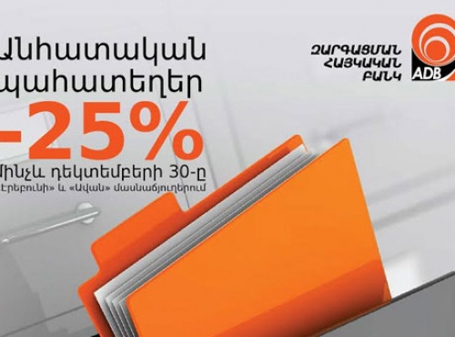 Զարգացման բանկի 2 մասնաճյուղում մինչև 2015-ի վերջն անհատական պահատուփերի վարձակալությունը՝ 25% զեղչով