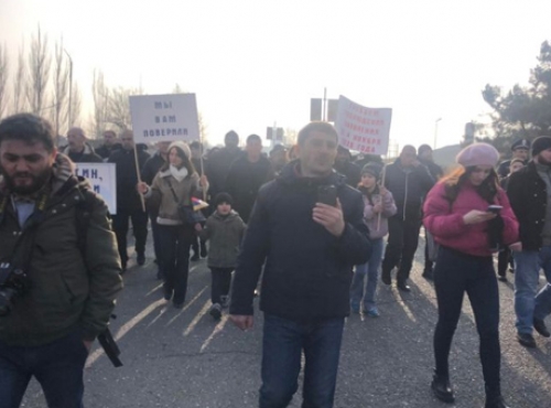 Արցախցիները երթով գնում են դեպի Ստեփանակերտի օդակայան՝ հանդիպում պահանջելու Վոլկովի հետ