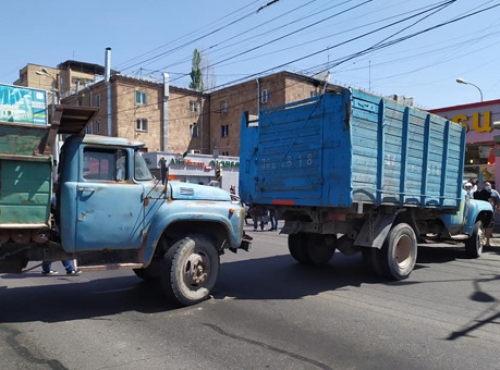 «Մուլտի Գրուպ»-ի բեռնատարներն ու Աբովյանի ավտոբուսը Երևանում փողոցներ են փակել