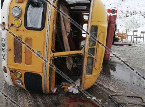 Վանաձոր-Սպիտակ ճանապարհին «ՊԱԶ»-ը կողաշրջվել է․ 19 տուժած կա