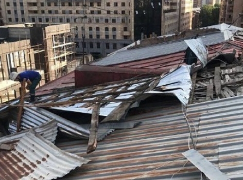 Ուժեղ քամուց Երևանում տանիք է վնասվել․ Կախված թիթեղներն ապամոնտաժվել են