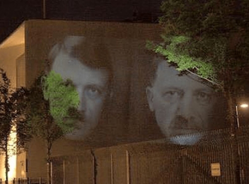 Հիտլերին և Էրդողանին նմանեցնող պատկերներ՝ Բեռլինում Թուրքիայի դեսպանատան պատին
