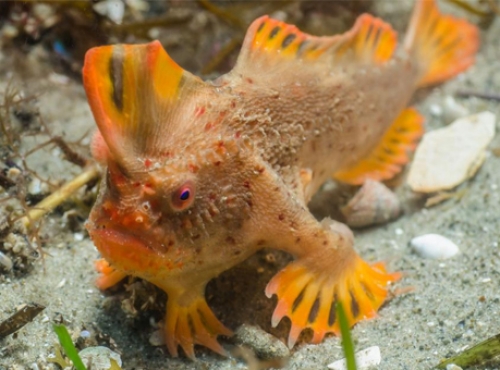 Red fish with ‘hands’ spotted crawling on the seafloor in Tasmania