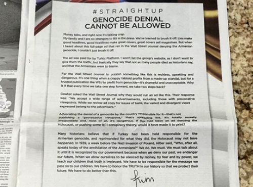 Kim Kardashian challenges Armenian Genocide denial in NYTimes ad