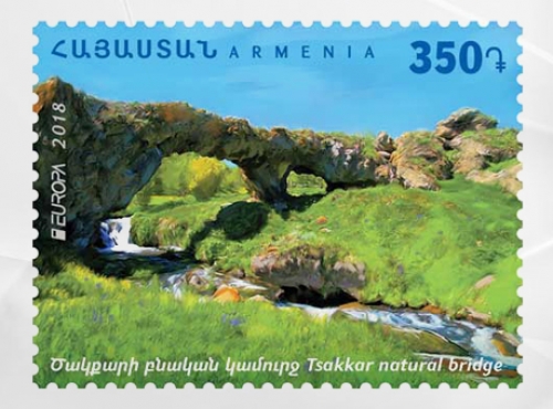Postage stamp celebrating “Europa 2018” cancelled in Armenia