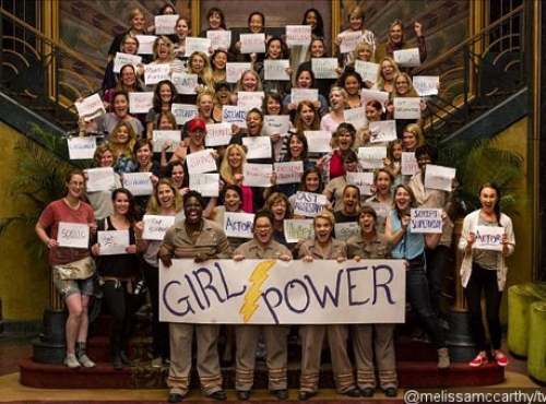 Melissa McCarthy celebrates “girl power” in “Ghostbusters” set pic