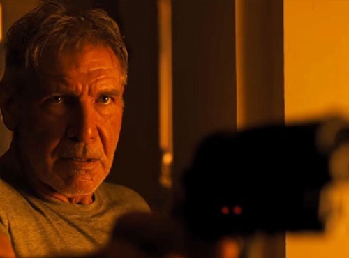 Harrison Ford points a gun at Ryan Gosling in “Blade Runner 2049” vid