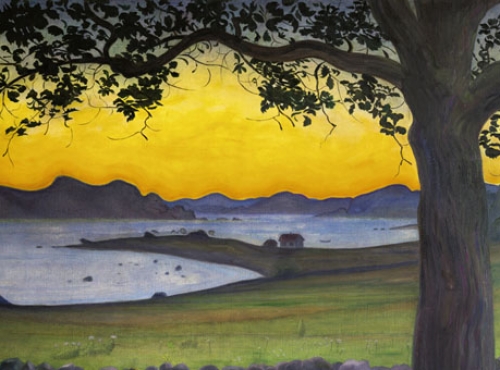 Sohlberg made his breakthrough at the Oslo state exhibition in March 1894 with the seminal landscape “Night Glow.”