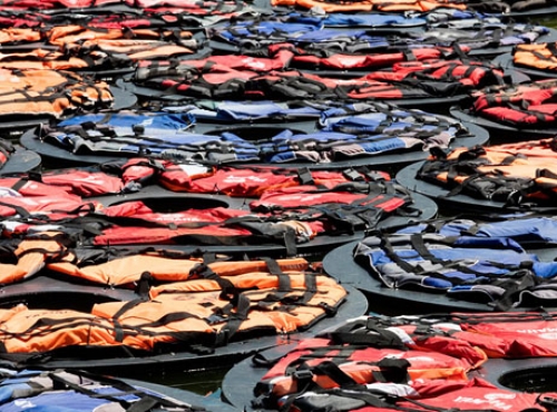 Chinese artist Ai Weiwei’s refugee life jackets in Vienna palace pond