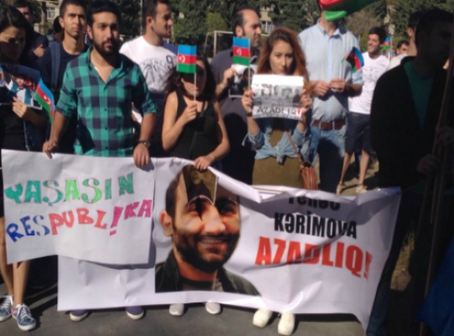 "Azerbaijan now finds itself in a crisis situation due to the incorrect policies of the Aliyev regime. We urgently need reforms in the country," Arif Gadzhili, a top party leader, told the crowd holding Azerbaijani flags and photographs of people believed to be political prisoners.