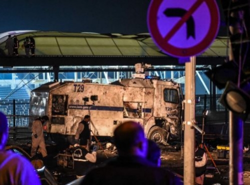 Saturday's attacks took place near the Vodafone Arena, home to Istanbul's Besiktas soccer team, about two hours after a match at the stadium and appeared to target police officers. The first was a car bomb outside the stadium, followed within a minute by a suicide bomb attack in an adjacent park.