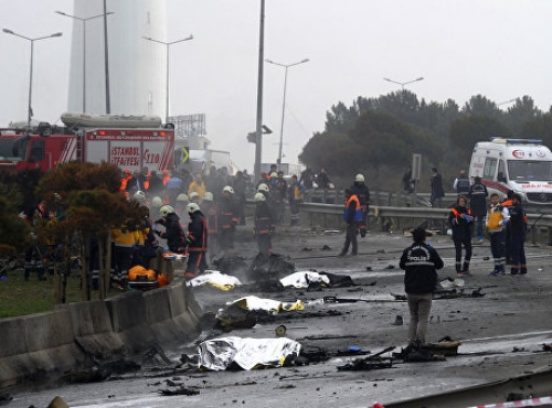 The Sikorsky S-76, belonging to the Eczacibasi group of companies, was carrying seven people — the company's four Russian guests, a Turkish official and two pilots.