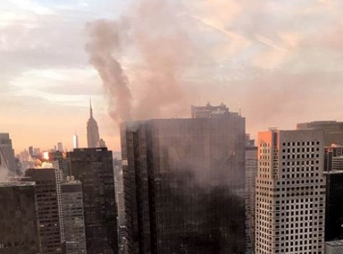 The fire reportedly started near the top of the 58-storey tower on Fifth Avenue in Manhattan at about 7am this morning local time. Pictures and video from the scene showed smoke billowing from the building.