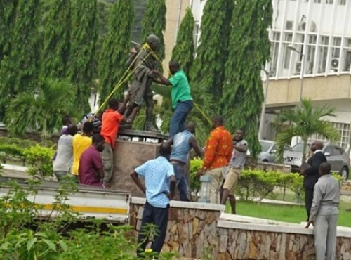 The statue was unveiled at the university in the Ghanian capital Accra two years ago but has been the subject of controversy and was removed in the middle of the night on Tuesday, leaving just an empty plinth.