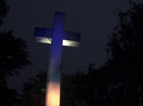 But part of the tradition, the lighting of the cross on the night before Easter, was continued with an added twist.