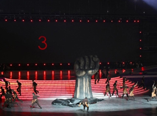 According to Azerbaijani media, part of the show was dedicated to the 2020 Nagorno-Karabakh war and Azerbaijan’s victory. It featured the “Iron Fist” monument symbolizing Aliyev’s “fist,” along with the number “44” as a reference to the war’s outcome.