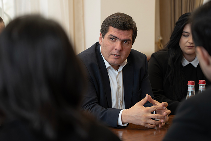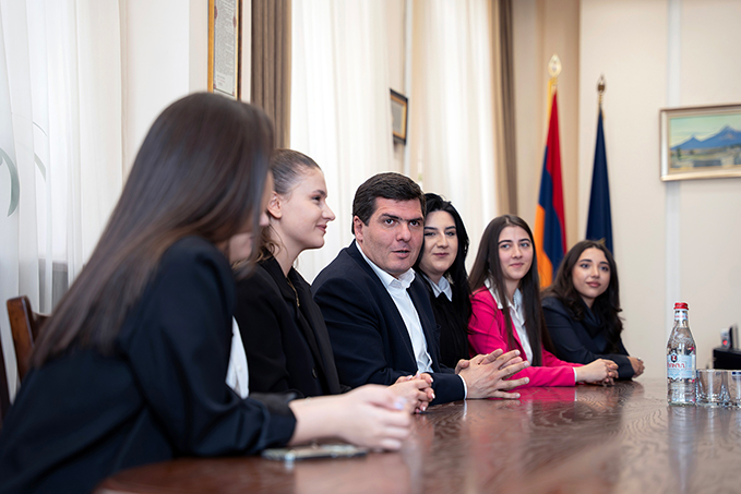 The meeting was attended by students who were granted AMD 1 mln scholarships both this year and last year, along with YSU Rector Hovhannes Hovhannisyan and the Dean of the Faculty of Economics and Management, Karlen Khachatryan.