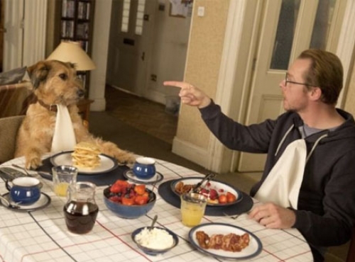 In the first trailer, Pegg gives his dog, Dennis, the ability to speak. Williams, who died last year, lent his voice for the part.
