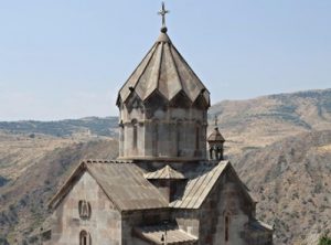 The desecrated Berdzor church, ruined for two years, now represents Armenia’s cultural and spiritual suffering, Geghamyan says.