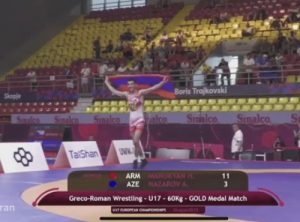 Armenia’s Hayk Manukyan claimed gold at the European Wrestling Championship, defeating Azerbaijani Ali Nazarov with a score of 11:3.