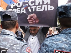 Protesters from opposing camps confronted each other outside parliament as Russian Federation Council Chair Valentina Matviyenko visited Armenia.