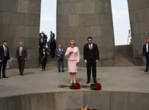 Valentina Matvienko honored WWII and Genocide victims in Yerevan ahead of key Russian-Armenian interparliamentary meetings.