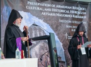 Karekin II warned of ongoing destruction of Armenian heritage and occupation of critical border areas during a Bern interfaith conference.
