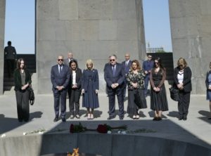 At the eternal flame, the delegation laid a wreath and flowers, honoring the memory of the victims of the Armenian Genocide.