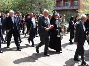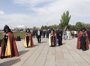 Catholicos Karekin II honored genocide victims and prayed for national strength, remembering Artsakh’s suffering at Tsitsernakaberd.